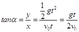 试题分析:设斜面的倾角为α,小球落在斜面上,竖直方向上的位移与水平方向位移的比值