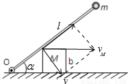如图所示,在水平面上放一边长为b的立方体木块M,木块上搁有一根长为l的轻质杆,杆端固定质量为m的均质小球(可视为质点),另一端铰接于O.不计摩擦阻力,由静止释放木块,当杆与水平面间夹角为α时小球获得最大速度,大小为vm.此时杆对木块作用力的大小为 ,木块向右的速度为 .