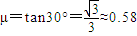 (2)假设轻质滑环与钢索有摩擦而使滑环和人一起做匀速直线运动,悬绳呈竖直方向,道理如上所述,此时滑环与钢索间的动摩擦因数为0.58.