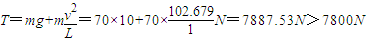 (3)在(1)小题情景中,己知悬绳长1m,最大承受力为7800N,当人运动的速度达到lOm/s时,滑环突然卡死,通过计算发现悬绳会被拉断.