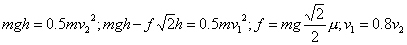 物体沿高为h、倾角为45°的斜面从静止开始由顶端下滑,到底端时速度为υ1.物体从高h处自由落下着地时速度为υ2.已知υ1=0.8υ2.求物体与斜面间的动摩擦因数μ.