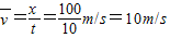 解答:解:运动员所经过的位移为100m,所用时间为10s;
