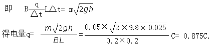 解: “∩”形导线通电时, 受安培力的冲量作用(导线所受重力略去)做竖直上抛运动, 上抛的初速度v=