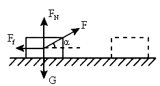 用拉力F使一个质量为m的木箱由静止开始在水平冰道上移动了s,拉力F跟木箱前进的方向夹角为α,木箱与冰道间的动摩擦因数为μ,求木箱获得的速度.
