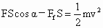 解:物体受力如图所示,拉力 F对物体做正功,摩擦力据动能定理得 ∵ ∴ |