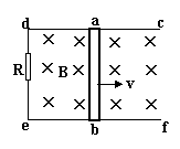 (1)证明:如图所示,假设垂直水平轨道放置的导体棒长L,以速度口在轨道上向右运动,设在△t时间内棒由原来的位置ab移到cd,这时线框的面积变化量△S=Lυ△t,(1分)