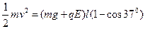 (2) 电场方向变成向下后,小球开始摆动做圆周运动,重力、电场力对小球做正功。![]()