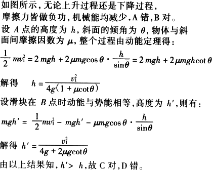 滑块以速率v1靠惯性沿固定斜面由底端向上运动,当它回到出发点时速率变为v2,且v2<v1,若滑块向上运动的位移中点为A,取斜面底端重力势能为零,则