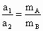 当对 A施力时是静摩擦力使B产生加速度,在对B施力时是静摩擦力使A产生加速度,由于此两种情况下静摩擦力大小相等,则相当于同样大小的力使质量不同的物体(A和B)产生加速度,由牛顿第二定律知两加速度大小应与其质量成反比.由上述分析得 |