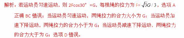 D.不论运动员运动状态如何,两绳拉力的合力大小都为G
