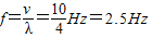 解答:解:由图,A=0.5m,λ=4m