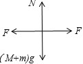 解析试题分析:对A、B整体受力分析,如图,受到重力(M+m)g、支持力N和已知的两个推力,对于整体,由于两个推力刚好平衡,故整体与地面间没有摩擦力;![]()