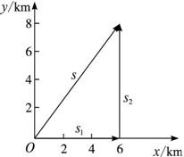 解析:选东为x轴正方向,北为y轴正方向,坐标点为起点,由题设条件可知:汽艇先向东的位移s1=6.0 km,再向北的位移s2=8.0 km,如图所示.设整个过程汽艇的位移为s,则,s=