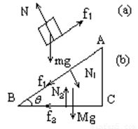 f2=N1sinθ-f1cosθ=mgcosθsinθ-(mgsinθ-ma)cosθ=macosθ=1×0.7×(2/3)=0.61N此力的方向与图中所设的一致(由C指向B的方向)