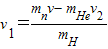 代入数据mn=1 u,mHe=4 u,mH=3 u,得v1=-1.0×103 m/s,负号表示跟v的方向相反.