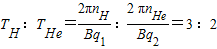 所以它们的转动周期之比为nH:nHe=THe:TH=2:3 当 α粒子转3周时,氘核转动2周.