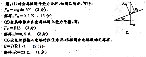 的金属棒ab与两导轨垂直并接触良好,整个装置处于磁感应强度B=0.80 T,垂直于斜面向上的匀强磁场中.金属导轨光滑,导轨与金属棒的电阻不计,取