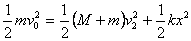 如图所示,质量为M的长滑块静止在光滑水平面上,左侧固定一劲度系数k足够大的水平轻质弹簧,右侧用一不可伸长的细轻绳连接于竖直墙上,细绳所能承受的最大拉力为T。使一质量为m、初速度为v0的小物块,在滑块上无摩擦地向左滑动,而后压缩弹簧。(弹簧弹性势能的表达式