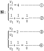 u1=10cm, v1=40cm, u2=12cm, v2=24cm, △u=u2-u1=2cm ∴应将凸透镜向光屏移2cm, 再把光屏向凸透镜移动40-2-24=14cm |
