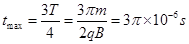 当粒子从下板边缘飞出电场再进入磁场时,在磁场中运动时间最长: