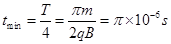 当粒子从上板边缘飞出电场再进入磁场时,在磁场中运动时间最短: