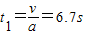 从发现紧急情况到最后汽车停下来所需的时间t=0.5+t1=7.2s