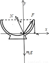 y方向:Fsin60°+Nsin60°-m1g=0 ③