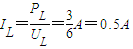 通过灯L的电流: