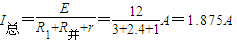 并联电压:U并=I总R并=1.875×2.4V=4.5V