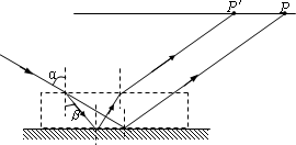 (2)由sinα=nsinβ,得β=30° 设透明体的厚度为d,由题意及光路有 2dtan60°-2dtan30°=Δs 解得d=1.5 cm (3)光在透明体里运动的速度 v= 光在透明体里运动的路程 ∴光在透明体里运动时间 |