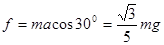 如图所示,电梯与地面的夹角为30°,质量为m的人站在电梯上。当电梯斜向上作匀加速运动时,人对电梯的压力是他体重的1.2倍,那么,电梯的加速度a的大小以及人与电梯表面间的静摩擦力f的大小分别是