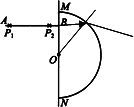 利用插针法可以测量半圆形玻璃砖的折射率.实验方法如下:在白纸上做一直线MN,并做出它的一条垂线AB,将半圆形玻璃砖(底面的圆心为O)放在白纸上,它的直边与直线MN对齐,在垂线AB上插两个大头针P1和P2,然后在半圆形玻璃砖的右侧插上适量的大头针,可以确定光线P1P2通过玻璃砖后的光路,从而求出玻璃的折射率.实验室中提供的器材除了半圆形玻璃砖、木板和大头针外,还有量角器.