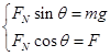 如图所示,光滑半球形容器固定在水平面上,O为球心.一质量为m的小滑块,在水平力F的作用下静止于P点。设滑块所受支持力为FN,OP与水平方向的夹角为θ,则下列关系正确的是( )![]()