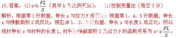 (1)根据测试结果,推导出线材伸长x与材料的长度L、材料的横截面积S及拉力F的函数关系为x= (用所给字母表示,比例系数用k表示)。