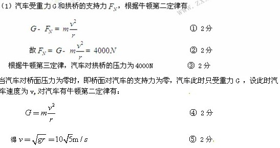 (2)汽车以多大速度通过拱桥的顶部时,汽车对圆弧形拱桥的压力恰好为零?