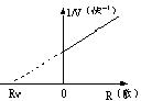 ,r << R时, ∴ 改变R的大小,依次测出电压表相应的电压值,画出1/V—R关系图象,把图线延长至与R轴相交,则截距就是RV值。如图所示。