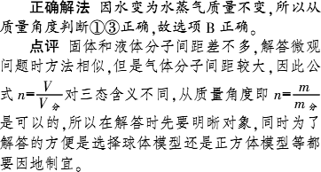 V0表示在标准状态下水蒸气的摩尔体积,ρ为在标准状态下水蒸气的密度,NA为阿伏加德罗常数,m、V分别表示每个水分子的质量和体积,下面是四个关系式:①NA=[ ]
