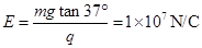一个质量m=40g,带电量q=-3×10-8C的半径极小的小球用丝线悬挂起来处在某匀强电场中,电场线水平.当小球静止时,测得悬线与竖直方向夹角为37o,如图所示,求该电场的场强大小及方向.(g=10m/s2)