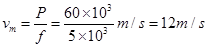 汽车发动机的功率为60 kW,若汽车总质量为5´103 kg,在水平路面上行驶时,所受阻力大小恒为5´103 N,则汽车所能达到的最大速度为______________m/s;
