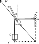 解:对滑轮受力分析,受连个绳子的拉力和杆的弹力;滑轮一直保持静止,合力为零,故杆的弹力与两个绳子的拉力的合力等值、反向、共线;