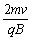 如图所示,在x轴的上方(y≥0)存在着垂直于纸面向外的匀强磁场,磁感应强度为B.在原点O有一个离子源向x轴上方的各个方向发射出质量为m、电荷量为q的正离子,速度都为v.对那些在xOy平面内运动的离子,在磁场中可能到达的最大x=________,最大y=________.![]()