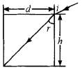 | 门外物体射出的光到门镜后,若在光学玻璃中的折射光能射到光学玻璃的内表面,则门内的人就能看到门外的物体,在此研究临界情况,即入射光从右上角入射,其折射光恰从左下角射出的情况如图所示,再依几何情况,既可确定视野,又可确定玻璃的折射率.