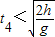 球4从高于d位置处以另一初速度水平抛出后过d点,所以球4运动到高为h处时竖直方向速度大于0,加速度也为g,所以运动时间