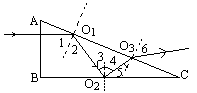 ,入射光线垂直于AB面,求光线从棱镜第一次折射入空气时的折射角,并作出光路图,已知折射率n=