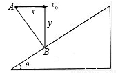 如图所示,小球以v0正对倾角为θ的斜面水平抛出,若小球到达斜面的位移最小,则飞行时间t为(重力加速度为g)( ) ![]()