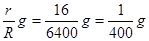 1990年5月,紫金山天文台将他们发现的第2752号小行星命名为吴健雄星,该小行星的半径为16 km.若将此小行星和地球均看成质量分布均匀的球体,小行星密度与地球相同.已知地球半径R=6 400 km,地球表面重力加速度为g.这个小行星表面的重力加速度为( )