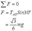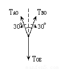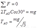 以O点为对象,受力分析如图,TAO=TBO,则有