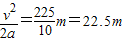 【答案】分析:根据匀减速直线运动位移速度公式即可求解.