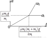 时,对m1,根据牛顿第二定律有:μm2g=m1a1,解得:a1=![]()