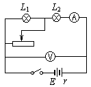 BC【解析】画出等效电路如图所示,触片向右滑动的过程中,变阻器接入电路的部分阻值变大,电路中的总电阻变大,路端电压变大,总电流变小,故电流表A的读数变小,电压表V的读数变大,L2变暗,小灯泡L1变亮,BC两项正确。